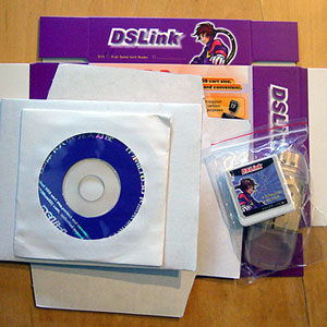 中身はDSLink本体、カードリーダー、ドライバーCD、英語のマニュアル