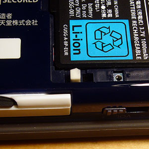 DSL本体裏蓋を開け、電池手前の穴にさっきのアレを突っ込み